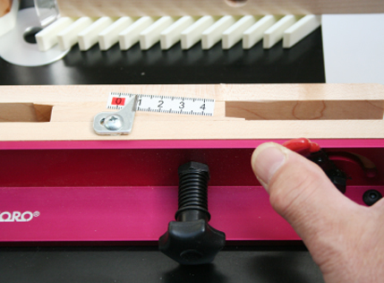 If you slide the fence by 5mm, it adjusts the depth by only 0.5mm in the direction of the arrow.