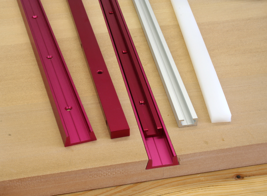 | You can use a 3/8" x 3/4" T slot track, UHMW bar, or miter slot runners. |