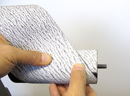 The sandpaper roll is attached on the drum with Velcro.