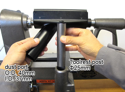 | The Dust Collection Support is available for wood lathe with 1” (Φ25mm) toolrest post. |